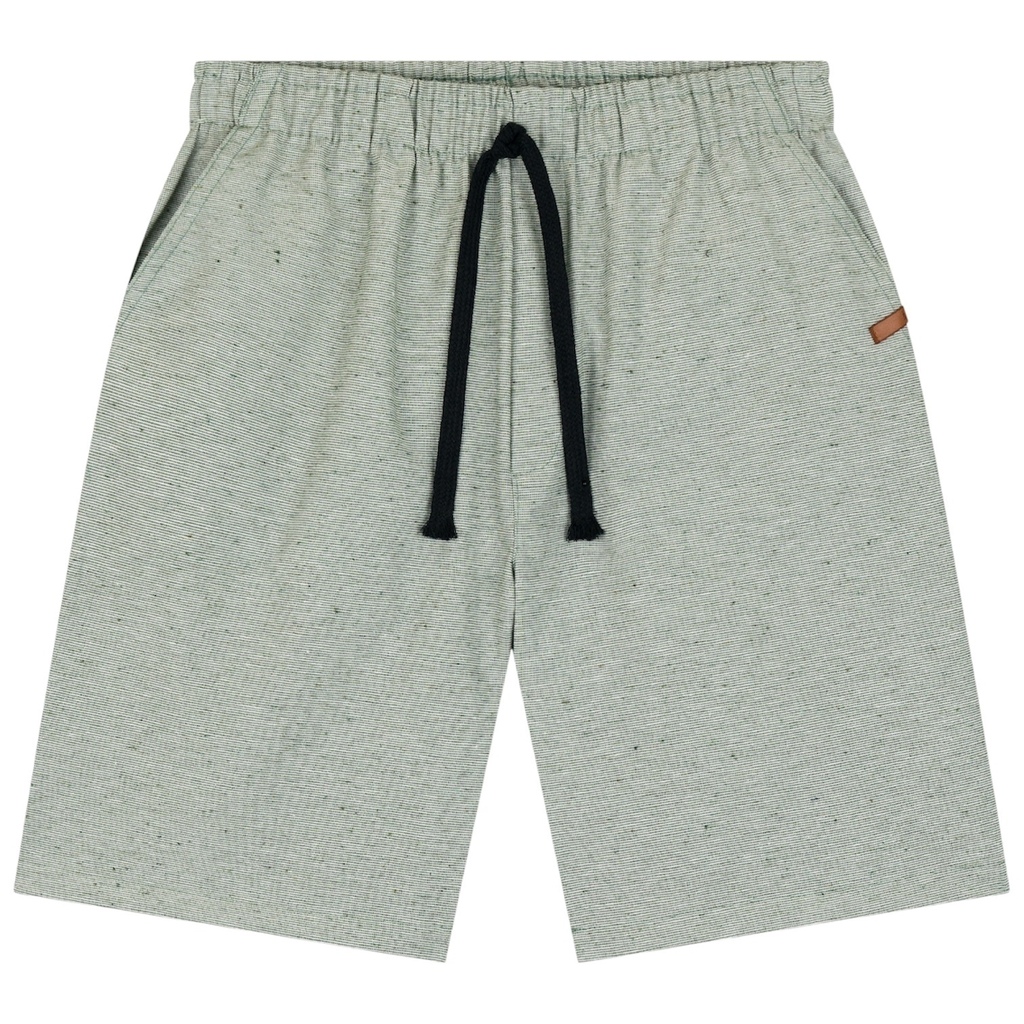 Conjunto com camiseta em meia malha penteada e estampa em relevo e Bermuda em tecido eco linen com bolsos e cordão decorativo na cintura. Feito com tecido sustentável.